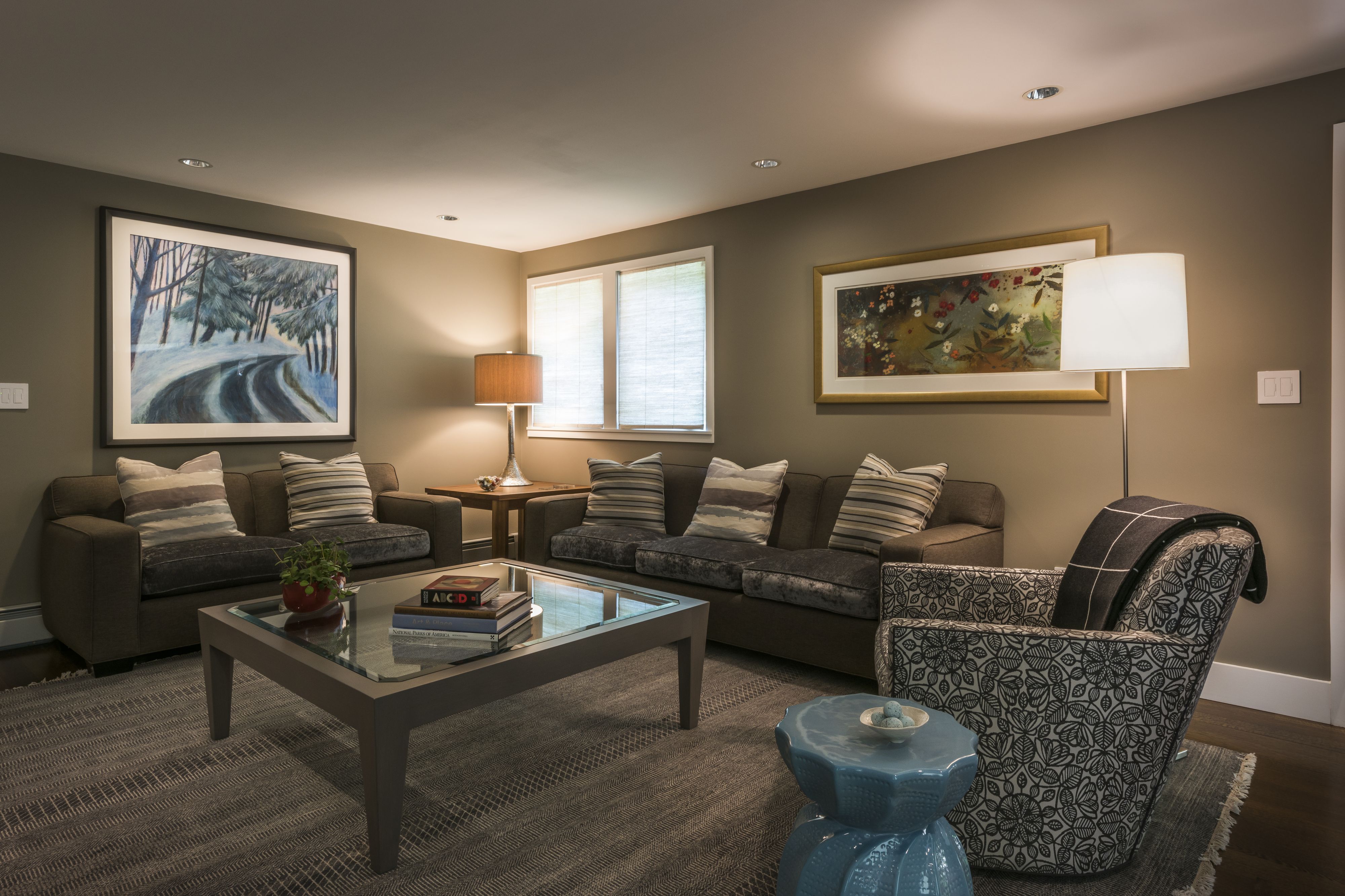 The existing house was re-arranged to improve function and flow on the main floor, while the Master Suite was renovated on the second. A four seasons room was added to the side of the house and the lighting for the entire house was updated. Interior design services provided furniture, including custom pieces, decorative lighting, window treatments, and carpets.